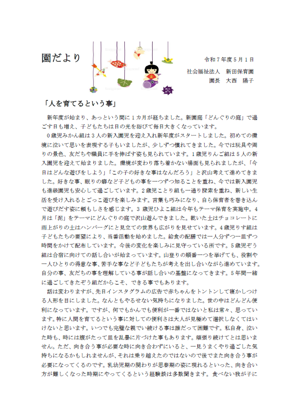 園だより5月号をご覧になるには 下記リンクをクリックしてください。