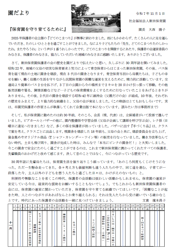 園だより11月号をご覧になるには 下記リンクをクリックしてください。