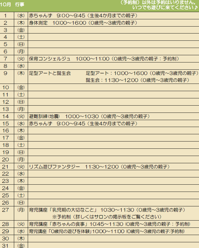 ・離乳が完了し、歩行が確立しているお子さんから就学前のお子さんが対象です。
