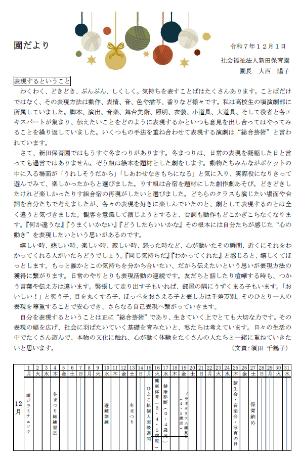 園だより12月号をご覧になるには 下記リンクをクリックしてください。